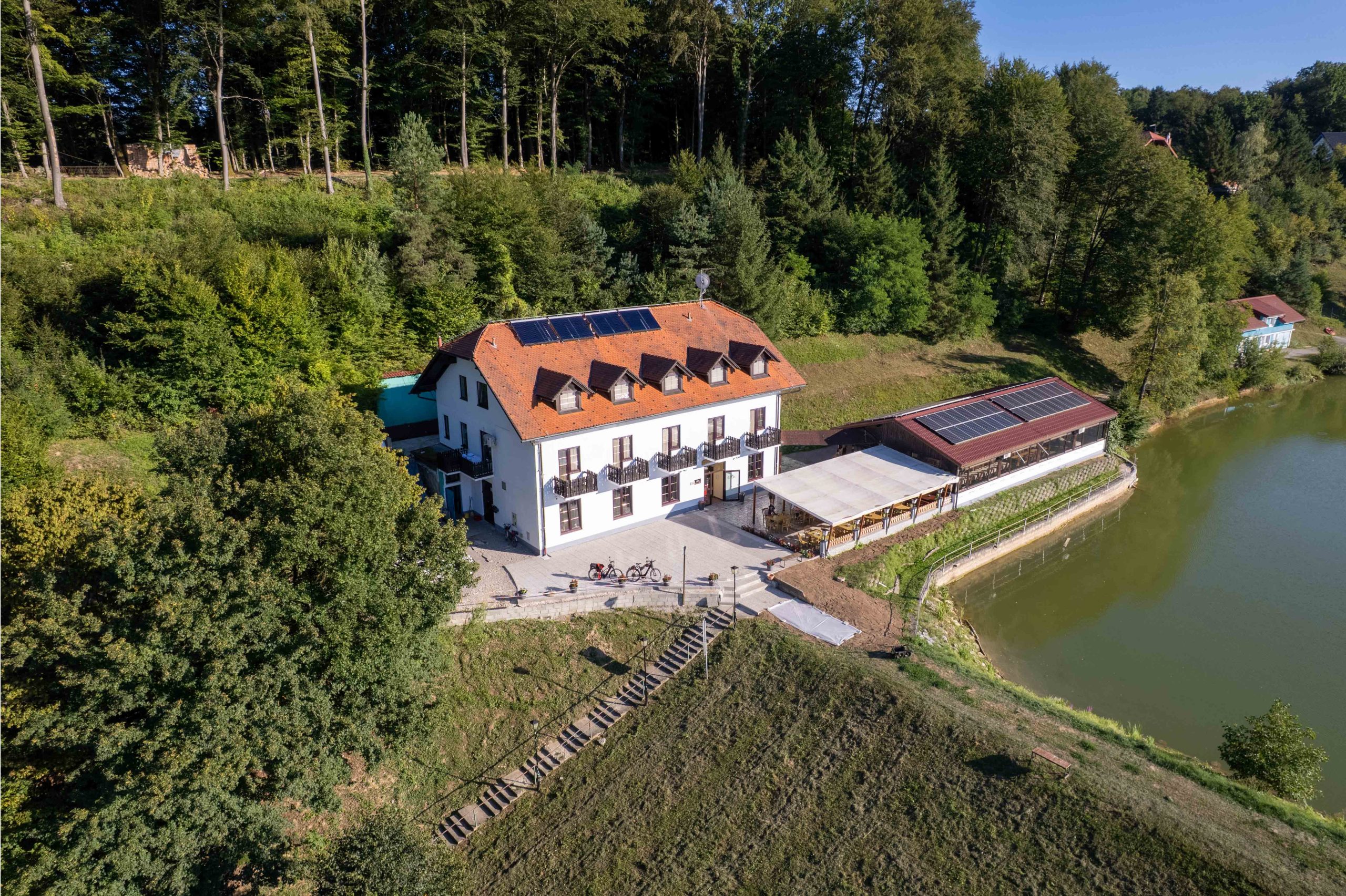 Welcome to the Gostišču ob Ribniku - a special place where tradition, comfort and taste are intertwined. Our story goes back to 1994, when we started building the glass hall that has become the true heart of our guest house. Almost at the same time, we built a comfortable guest house, which today proudly accommodates up to 45 guests per night.